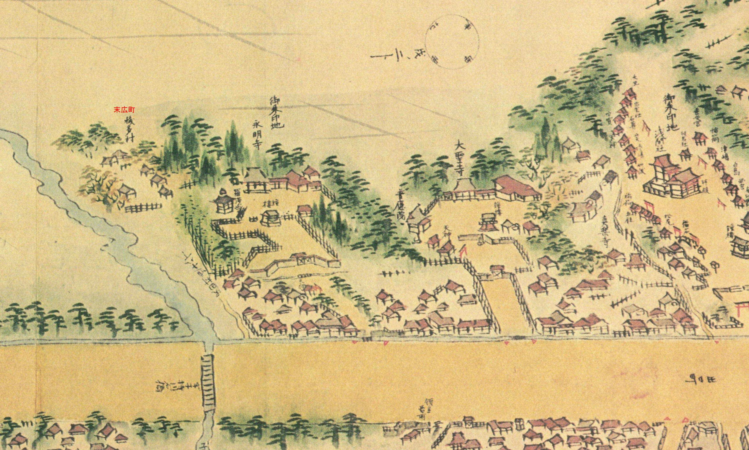 東海道分間延絵図では、旧末広町のあたりに、はっきりと「穢多村」と書かれています。