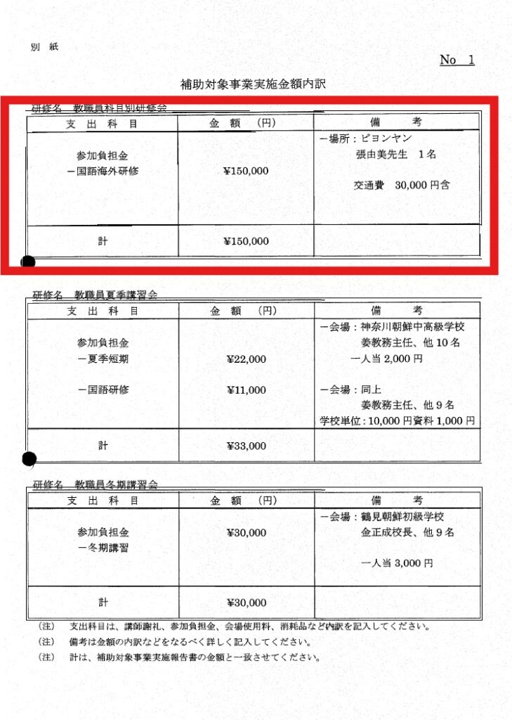 中でもウォッチャーの間で語り継がれるのが2007年の平壌研修への補助金だ。