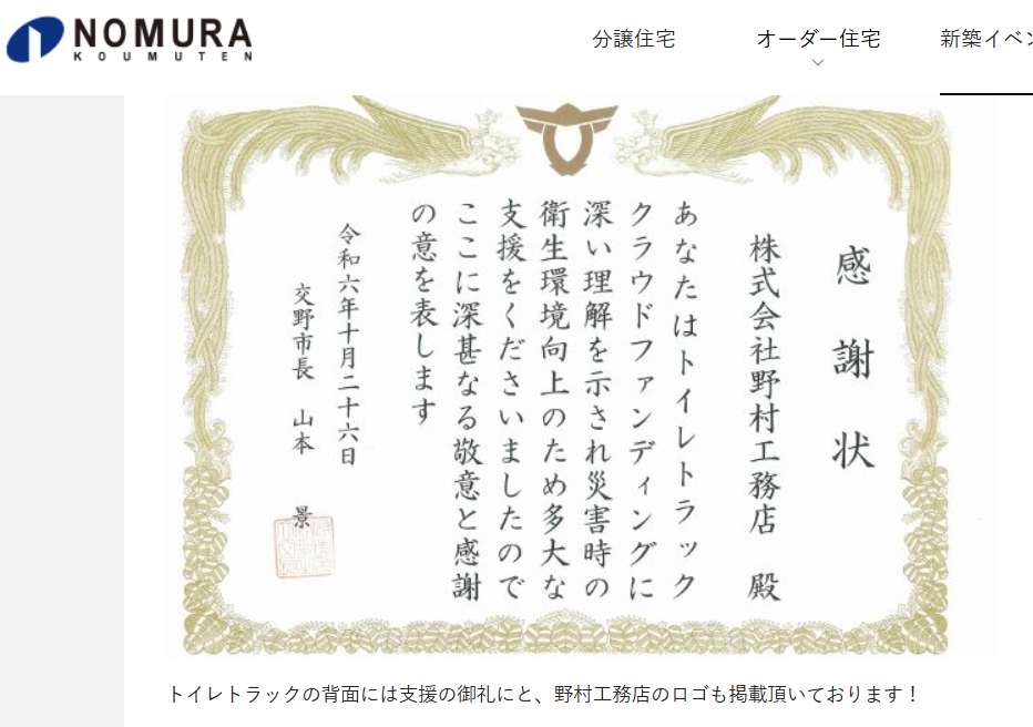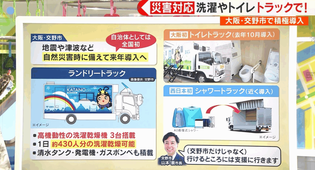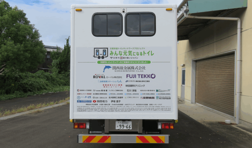 災害時のトイレ不足解消のために各地の自治体で「トイレトラック」の導入が進んでいる。交野市でもクラウドファンディングを募集しトラックを導入。昨年10月26日にお披露目式&感謝状贈呈式が開催された。この模様は市のWebサイトで公開されている。