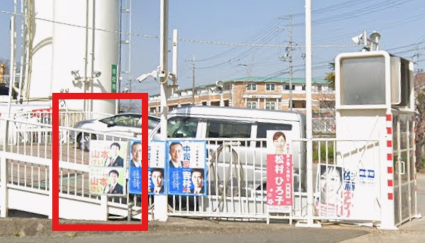 オクノナマコン正門前。山本氏ポスターが貼られていた。(2021年頃)