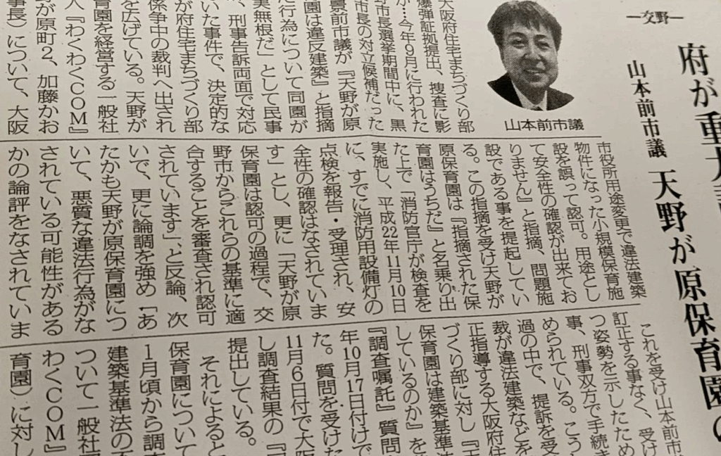 河川敷の不法占有問題で交野市が提訴したオクノナマコン社長はかつて山本氏の支援者の一人。社屋前には山本氏のポスターが貼られた過去も昨年、報じた。かつての恩人、仲間でも容赦なく関係を切ってしまうのが山本氏らしい。