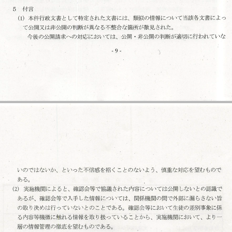 通常であれば、本年末までには新潟県教委は答申通りの裁決をして、筆者は黒塗り部分が縮小された文書を入手できるはずだが、同和が関係すると答申が無視されることもあり得るので、予断を許さない。