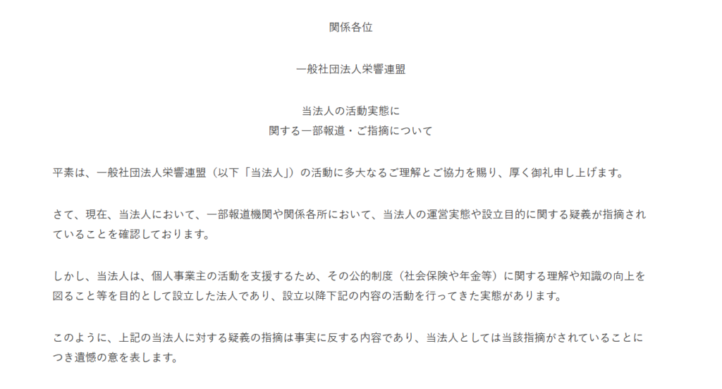 問題になったのは一般社団法人栄響連盟、一般社団法人フリーランスジャパン、合同会社松本考業の3つ。
