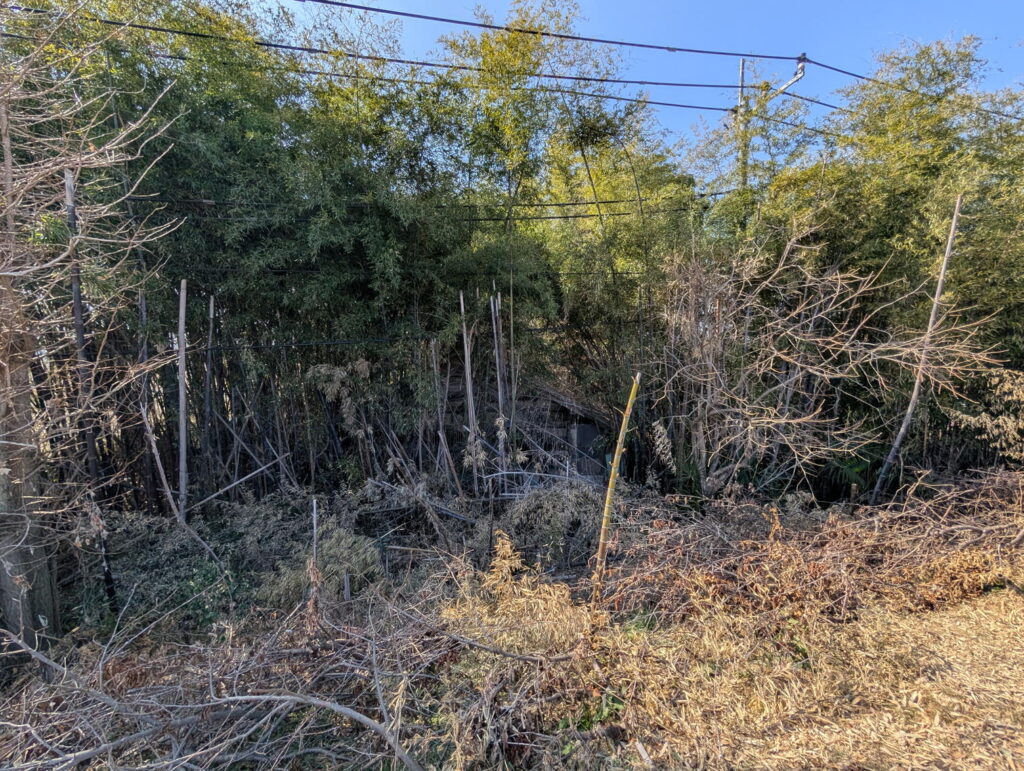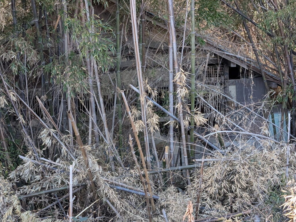 昭和初期には9軒あったが、現在は7, 8軒か。竹藪の中に廃墟がある。