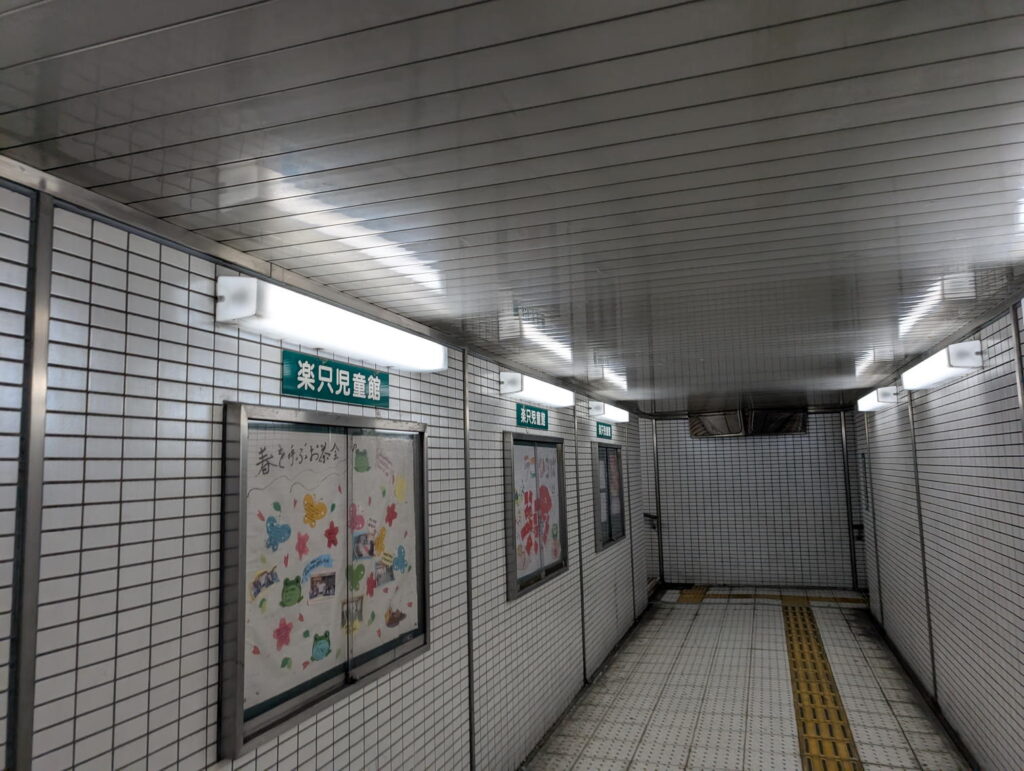 隣保館等があった場所からは道路を隔てており、地下通路から行ける。